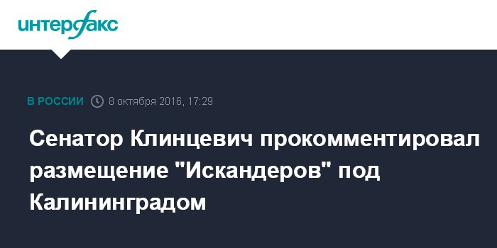 В западных СМИ появились сообщения, что Россия развернула комплексы "Искандер-М" в Калининградской области. В субботу 8 октября официальный представитель Минобороны РФ генерал-майор Игорь Конашенков заявил, что подразделения ракетных войск с комплексами "Искандер" перебрасывались и будут перебрасываться в Калининградскую область в рамках боевой подготовки.