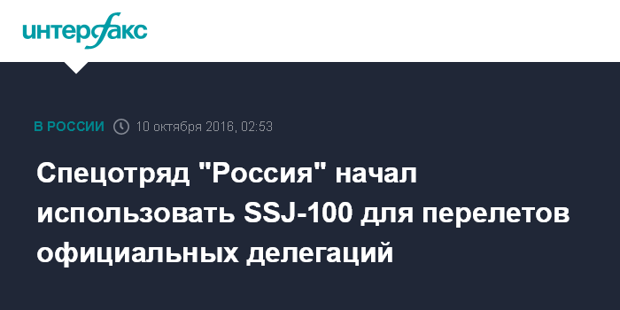 Спецотряд "Россия" начал использовать SSJ-100 для перелетов официальных делегаций