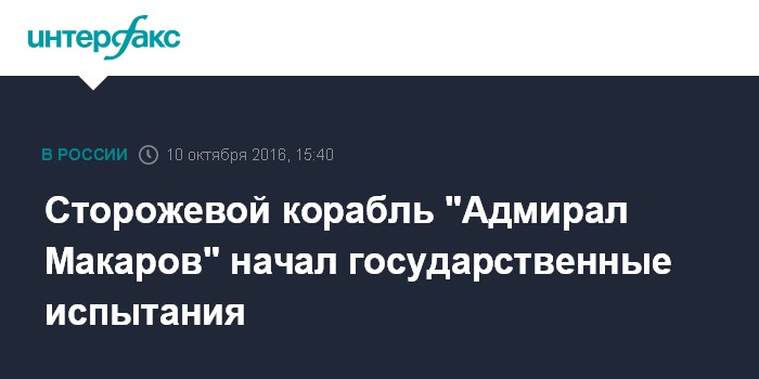 Москва. 10 октября. INTERFAX.RU - Государственные испытания третьего сторожевого корабля проекта 11356 "Адмирал Макаров", построенного на Прибалтийском судостроительном заводе (ПСЗ) "Янтарь", начались 7 октября, сообщил в понедельник "Интерфаксу" пресс-секретарь ПСЗ Сергей Михайлов.