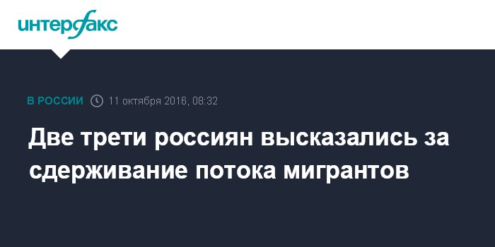 Москва. 11 октября. INTERFAX.RU - У россиян сохраняется отрицательное отношение к мигрантам, российские граждане высказываются за сдерживание притока приезжих, также популярны идеи ограничения проживания на территории России для некоторых национальностей, сообщили "Интерфаксу" в "Левада-Центре".