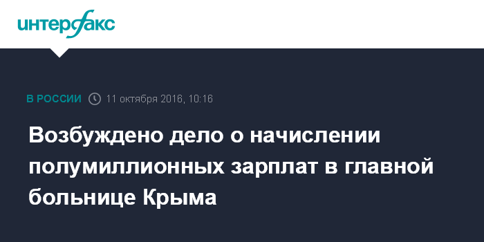 Возбуждено дело о начислении полумиллионных зарплат в главной больнице Крыма