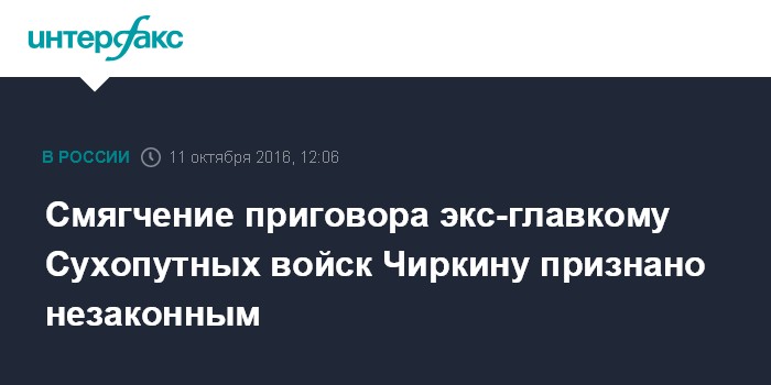 Смягчение приговора экс-главкому Сухопутных войск Чиркину признано незаконным