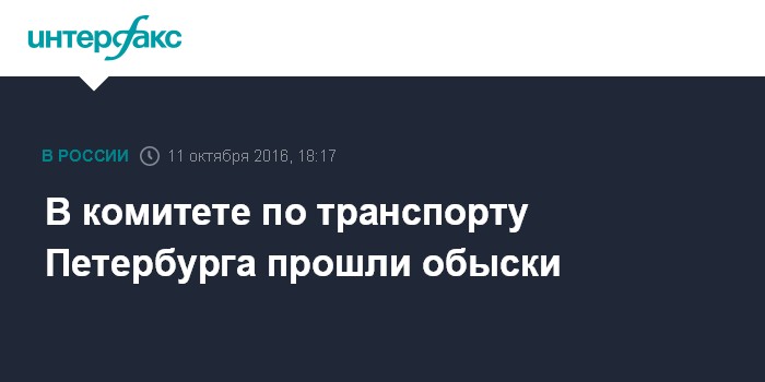 Москва. 11 октября. INTERFAX.RU - Следователи проводят во вторник оперативные мероприятия в здании комитета по транспорту Санкт-Петербурга.