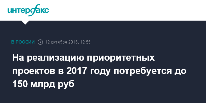 На реализацию приоритетных проектов в 2017 году потребуется до 150 млрд руб