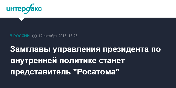 Замглавы управления президента по внутренней политике станет представитель "Росатома"