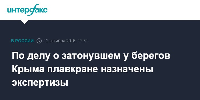 Москва. 12 октября. INTERFAX.RU - Следователи назначили судебно-медицинскую и судоводительскую экспертизы в рамках расследования уголовного дела по факту затопления плавучего крана в Черном море у берегов поселка Ливадия в Крыму.
