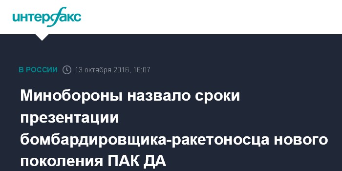 Минобороны назвало сроки презентации бомбардировщика-ракетоносца нового поколения ПАК ДА