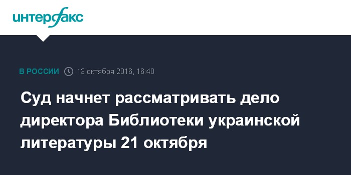 Суд начнет рассматривать дело директора Библиотеки украинской литературы 21 октября