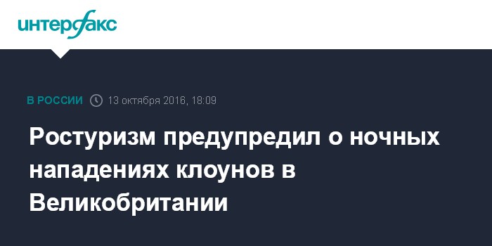 "Посольство Российской Федерации в Великобритании сообщает о том, что в последнее время в разных регионах страны в темное время суток отмечаются случаи нападения на людей злоумышленников в клоунских костюмах, цель которых - вызвать испуг и недоумение", - говорится в сообщении, размещенном на сайте ведомства.