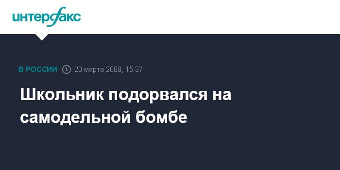 "Установлено, что школьник подорвался у собственного дома в момент испытания самодельного взрывного устройства. Он зажег спичку и хотел поджечь фитиль, но искра попала на воспламеняющееся вещество и произошел взрыв", - пояснил В.Горелых.