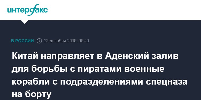 Китай направляет в Аденский залив для борьбы с пиратами военные корабли с подразделениями спецназа на борту