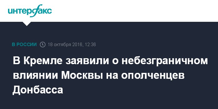 Москва. 18 октября. INTERFAX.RU - Россия имеет ограниченное влияние на ополченцев в Донбассе, заявил пресс-секретарь российского президента Дмитрий Песков.