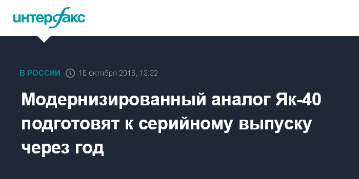 Модернизированный аналог Як-40 подготовят к серийному выпуску через год