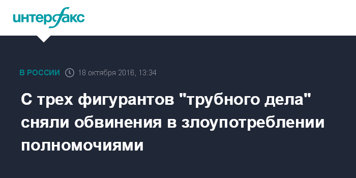 С трех фигурантов "трубного дела" сняли обвинения в злоупотреблении полномочиями