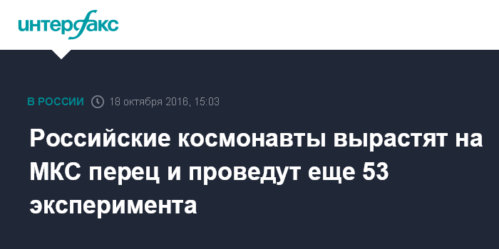 Москва. 18 октября. INTERFAX.RU - Российские космонавты вырастят перец в невесомости и отработают управление самоходными аппаратами с борта МКС.