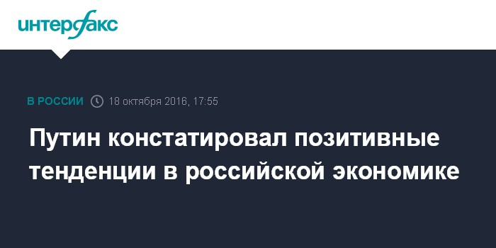 "Отмечу, что текущие индикаторы показывают - отечественная экономика постепенно преодолевает стагнацию, мы это отмечаем, это объективные данные, наметились позитивные тенденции в ряде секторов и отраслей экономики. Задача сейчас состоит в том, чтобы обеспечить переход к устойчивому росту, стимулировать предпринимательскую активность", - сказал Путин во вторник на совещании по вопросам экономики.