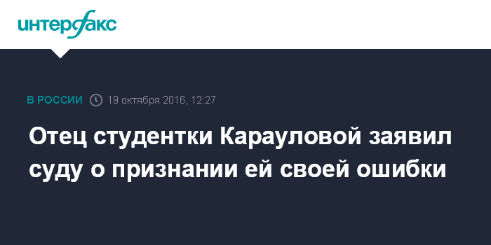 Отец студентки Карауловой заявил суду о признании ей своей ошибки