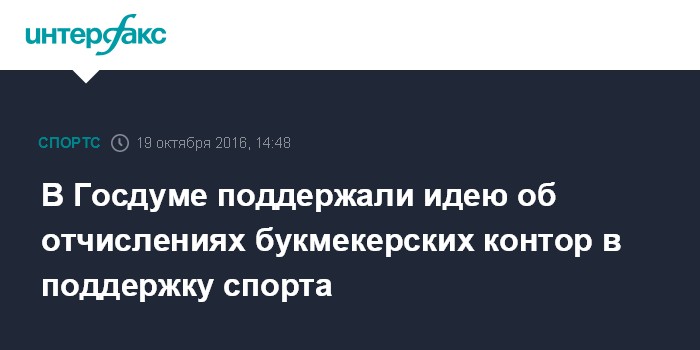 В Госдуме поддержали идею об отчислениях букмекерских контор в поддержку спорта