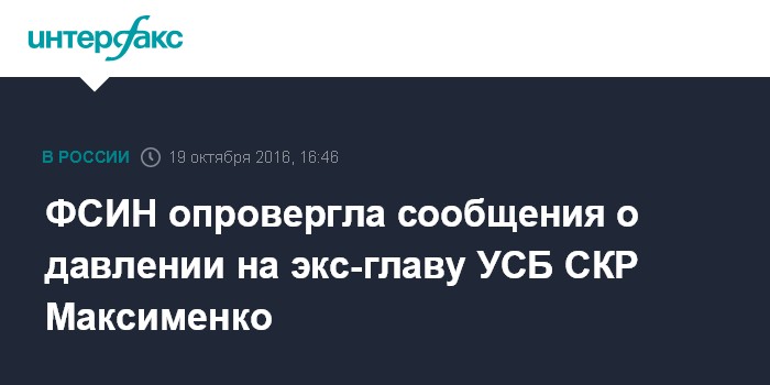 ФСИН опровергла сообщения о давлении на экс-главу УСБ СКР Максименко