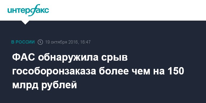 ФАС обнаружила срыв гособоронзаказа более чем на 150 млрд рублей