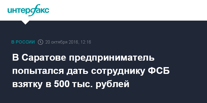 По версии следствия, 18 октября в одном из кафе во Фрунзенском районе Саратова мужчина передал сотруднику УФСБ 500 тыс. рублей в качестве взятки.