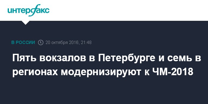 Пять вокзалов в Петербурге и семь в регионах модернизируют к ЧМ-2018