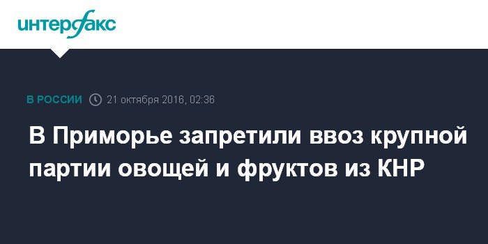 В Приморье запретили ввоз крупной партии овощей и фруктов из КНР