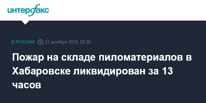 Москва. 21 октября. INTERFAX.RU - Возгорание на складе пиломатериалов в Хабаровске, начавшееся в четверг днем, удалось потушить только поздно ночью, сообщает пресс-служба ГУ МЧС России по Хабаровскому краю.