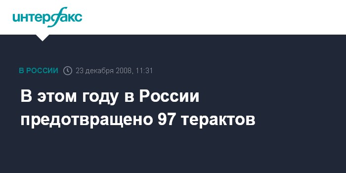 Москва. 23 декабря. INTERFAX.RU - Почти сто терактов предотвращено в 2008 году в России, сообщил директор ФСБ РФ Александр Бортников.