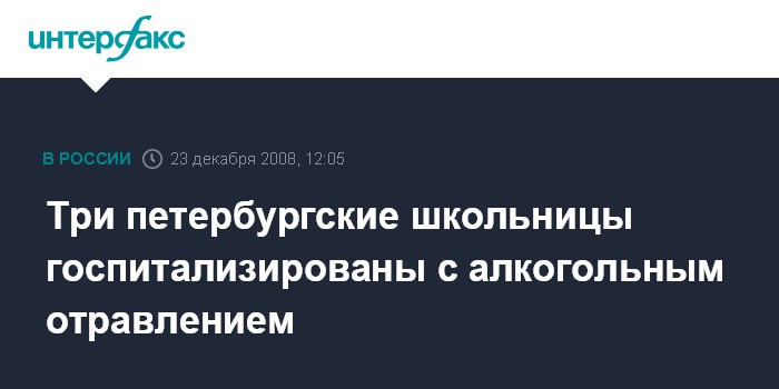Москва. 23 декабря. INTERFAX.RU - Госпитализацией закончился для трех петербургских старшеклассниц поход в ночной клуб, сообщили "Интерфаксу" в пресс-службе ГУВД по Петербургу и Ленобласти.