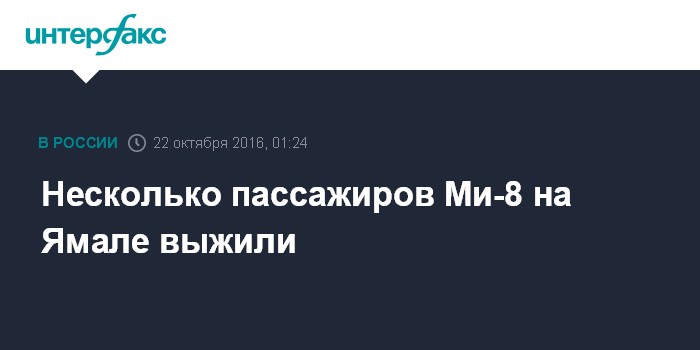 Москва. 22 октября. INTERFAX.RU - Среди пассажиров вертолета Ми-8, совершившего аварийную посадку на Ямале, есть выжившие, сообщил "Интерфаксу" источник в экстренных службах.