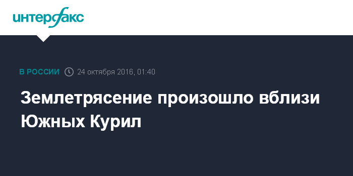 "Эпицентр землетрясения - в 118 км южнее острова Итуруп на глубине 6 км. Данных о том, что его ощутили в населенных пунктах островов, у нас пока нет. Тревога цунами не объявлялась", - отметил собеседник агентства.