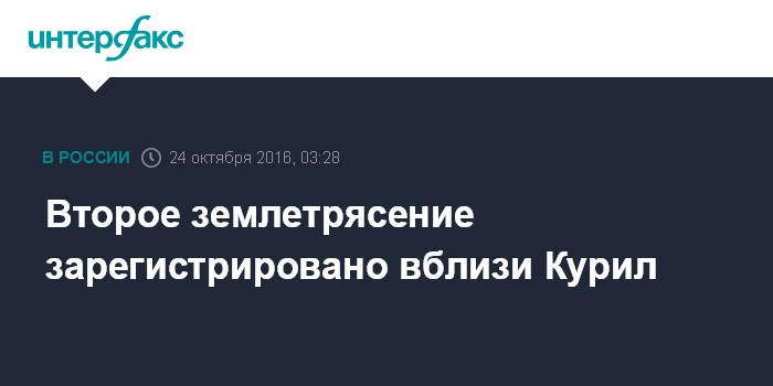 Москва. 24 октября. INTERFAX.RU - Землетрясение магнитудой 5 вблизи Курильских островов произошло в акватории Тихого океана, сообщает пресс-служба ГУ МЧС региона со ссылкой на Геофизическую службу РАН.