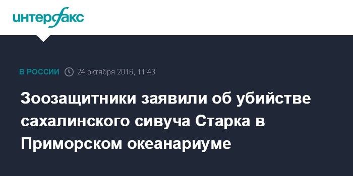 Москва. 24 октября. INTERFAX.RU - Сивуч Старк, погибший в океанариуме Владивостока в прошлую пятницу, скончался не из-за несчастного случая, считает Александр Иванов, руководитель фонда защиты животных "Зеленый Сахалин", активисты которого передали в сентябре океанариуму спасенного ими детеныша сивуча.