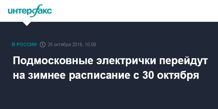 Москва. 25 октября. INTERFAX.RU - Московская железная дорога с 30 октября переходит на зимний режим работы, сообщили "Интерфаксу" в пресс-службе столичного филиала Российских железных дорог (ОАО "РЖД").