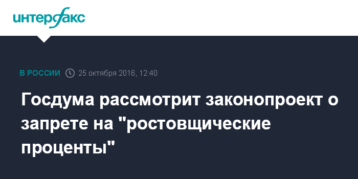 Госдума рассмотрит законопроект о запрете на "ростовщические проценты"