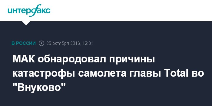 МАК обнародовал причины катастрофы самолета главы Total во "Внуково"