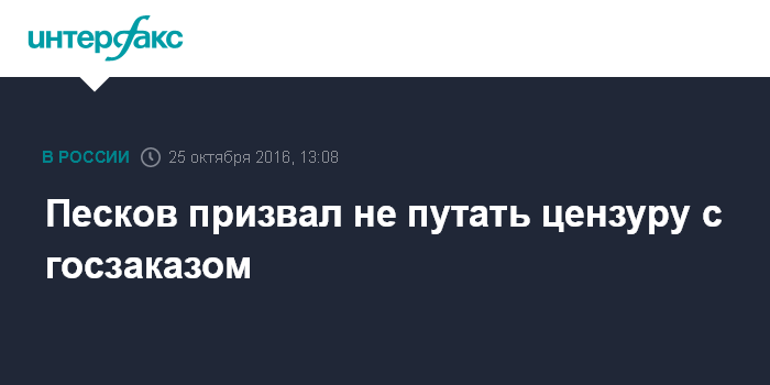 Москва. 25 октября. INTERFAX.RU - Пресс-секретарь президента Дмитрий Песков назвал цензуру в искусстве недопустимой, но при этом призвал не путать ее с участием государства в культурной жизни страны.