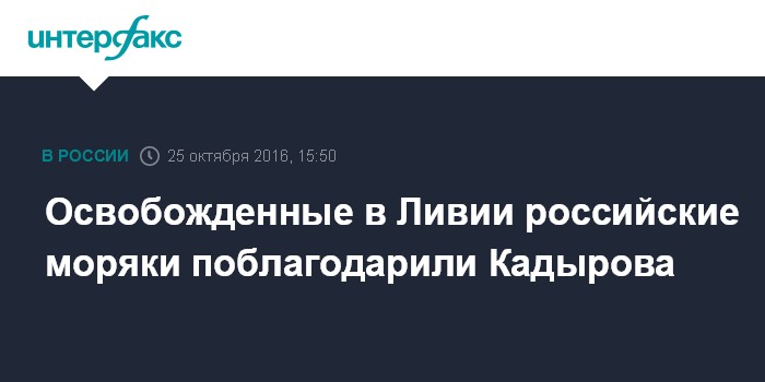 Кадыров заявил, что освобождение российских моряков стало результатом тесного взаимодействия с МИД РФ. Он напомнил, что за время пребывания российских моряков в неволе проводились многочисленные встречи с руководством и должностными лицами Ливии.