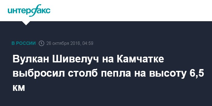 Москва. 26 октября. INTERFAX.RU - Вулкан Шивелуч, извергающийся на Камчатке, выбросил столб пепла на высоту 6,5 км над уровнем моря, сообщили агентству "Интерфакс - Дальний Восток" в среду в Камчатском филиале Геофизической службы РАН.
