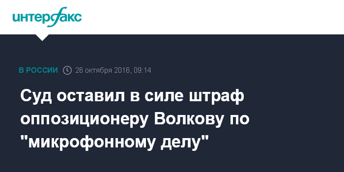 Суд оставил в силе штраф оппозиционеру Волкову по "микрофонному делу"