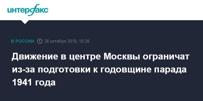 Москва. 26 октября. INTERFAX.RU - Движение по ряду улиц в центре Москвы будет ограничено на время подготовки и проведения мероприятий, посвященных празднованию 75-й годовщины парада 1941 года, сообщили "Интерфаксу" в среду в пресс-службе столичной Госавтоинспекции.