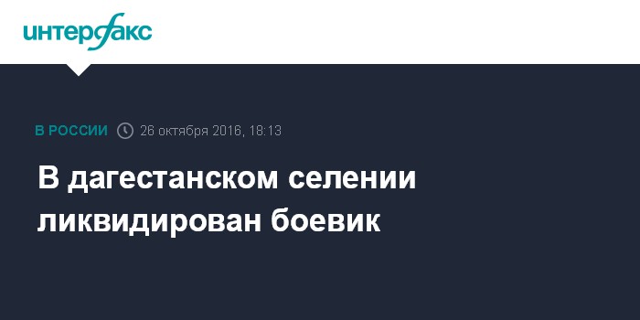 Москва. 26 октября. INTERFAX.RU - Сотрудники федеральных сил уничтожили боевика, открывшего по ним огонь в селении Тагиркент-Кизмаляр, сообщили агентству "Интерфакс" в силовых структурах Дагестана.