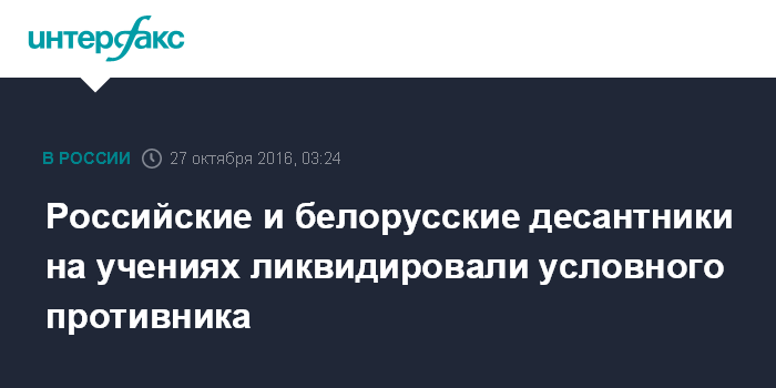 Москва. 27 октября. INTERFAX.RU - Десантники России и Белоруссии в ходе учения в Рязанской области с десантированием и боевой стрельбой отработали выполнение специальных задач в районе вооруженного конфликта в составе группировки миротворческих сил, сообщает "Интерфаксу" в департамент информации и массовых коммуникаций Минобороны РФ.