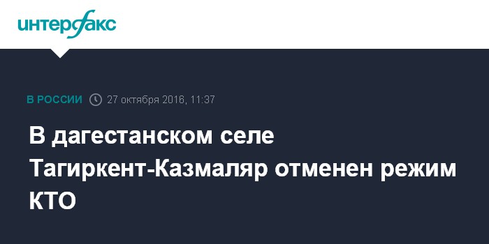 Москва. 27 октября. INTERFAX.RU - Режим контртеррористической операции, введенный в дагестанском селе Тагиркент-Казмаляр, отменен, сообщили агентству "Интерфакс" в четверг в Оперативном штабе НАК в республике.