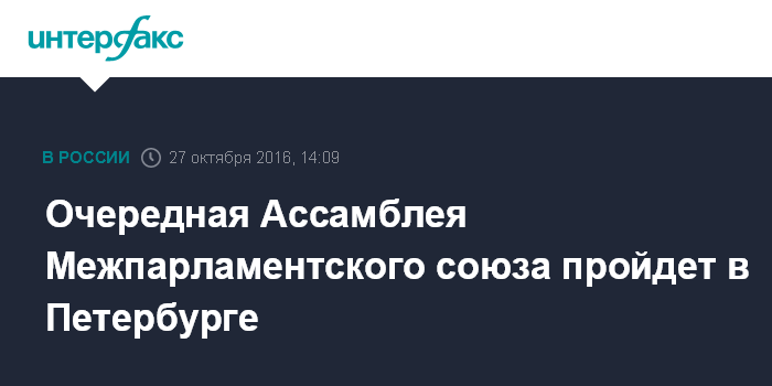 Москва. 27 октября. INTERFAX.RU - Санкт-Петербург утвержден в качестве места проведения 137-й Ассамблеи Межпарламентского союза (МПС).