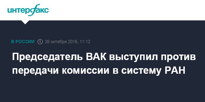 Москва. 28 октября. INTERFAX.RU - Председатель Высшей аттестационной комиссии Владимир Филиппов считает нецелесообразным передачу ВАК Российской академии наук.