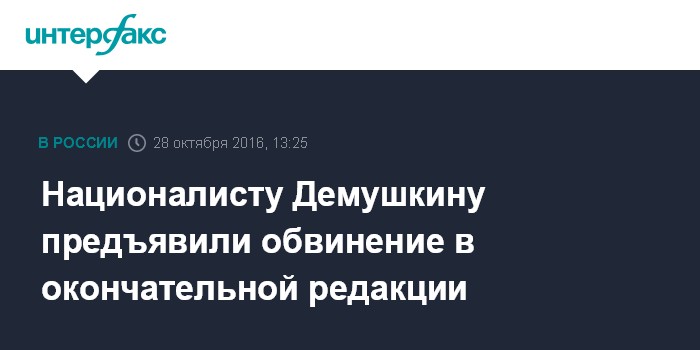 Как сообщалось, Демушкину было предъявлено обвинение в совершении нескольких преступлений, предусмотренных ч.1 ст. 282 УК РФ (возбуждение ненависти либо вражды). По версии следствия, с 2011 по 2013 года Демушкин разместил на своей странице в соцсети статьи экстремистского содержания.