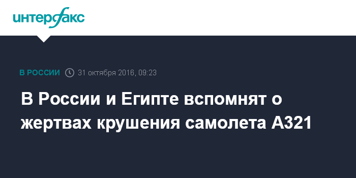 Москва. 31 октября. INTERFAX.RU - Памятные мероприятия запланированы в Петербурге и Египте в понедельник - в первую годовщину теракта на борту самолета "Когалымавиа" над Синайским полуостровом, в результате которого погибли 224 человека.
