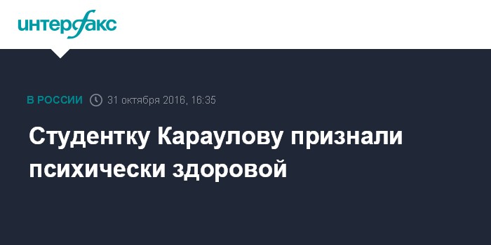 Москва. 31 октября. INTERFAX.RU - Специалисты института имени Сербского пришли к выводу об отсутствии у студентки МГУ Александры Ивановой (Варвары Карауловой) каких-либо психических расстройств.